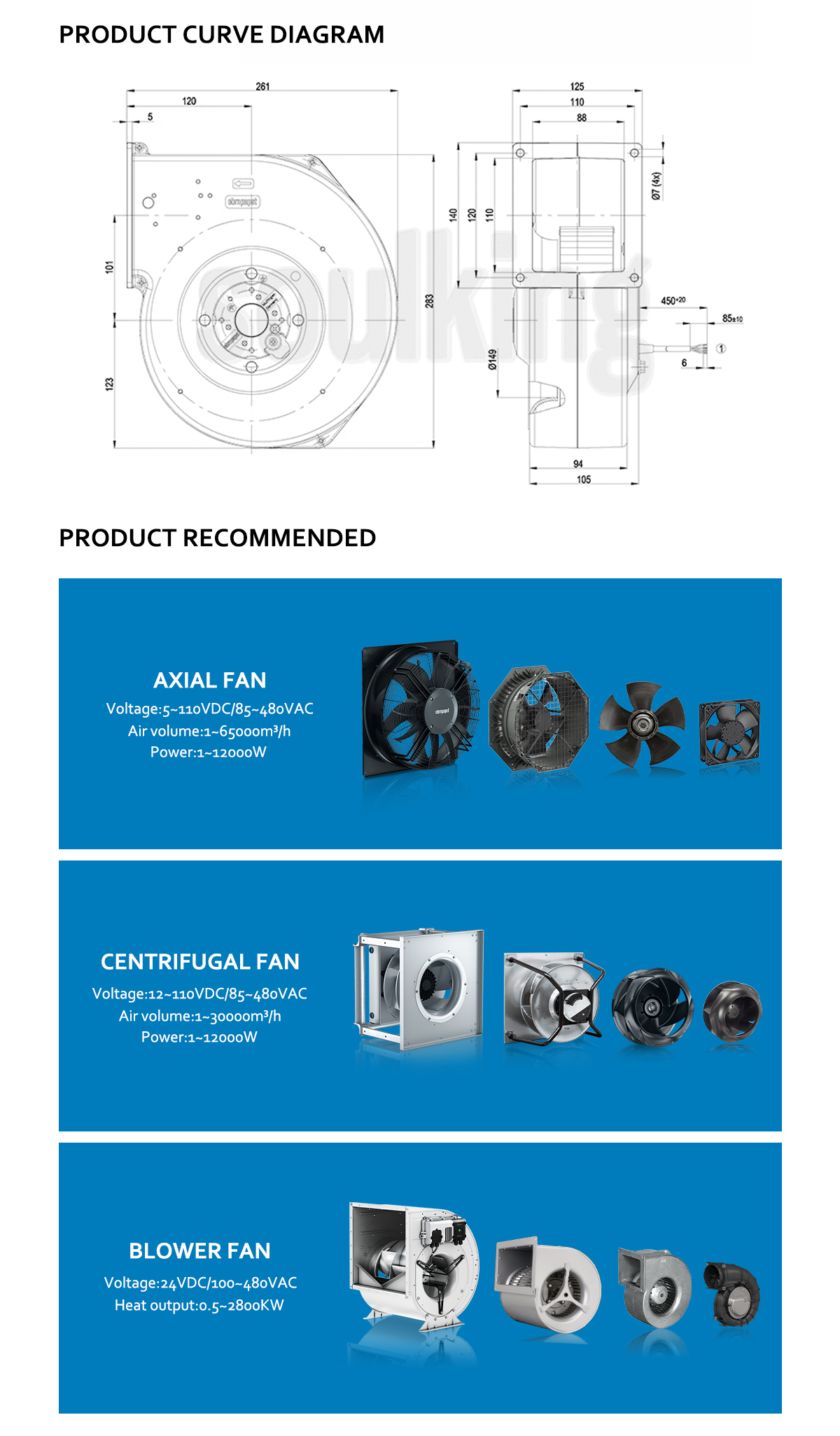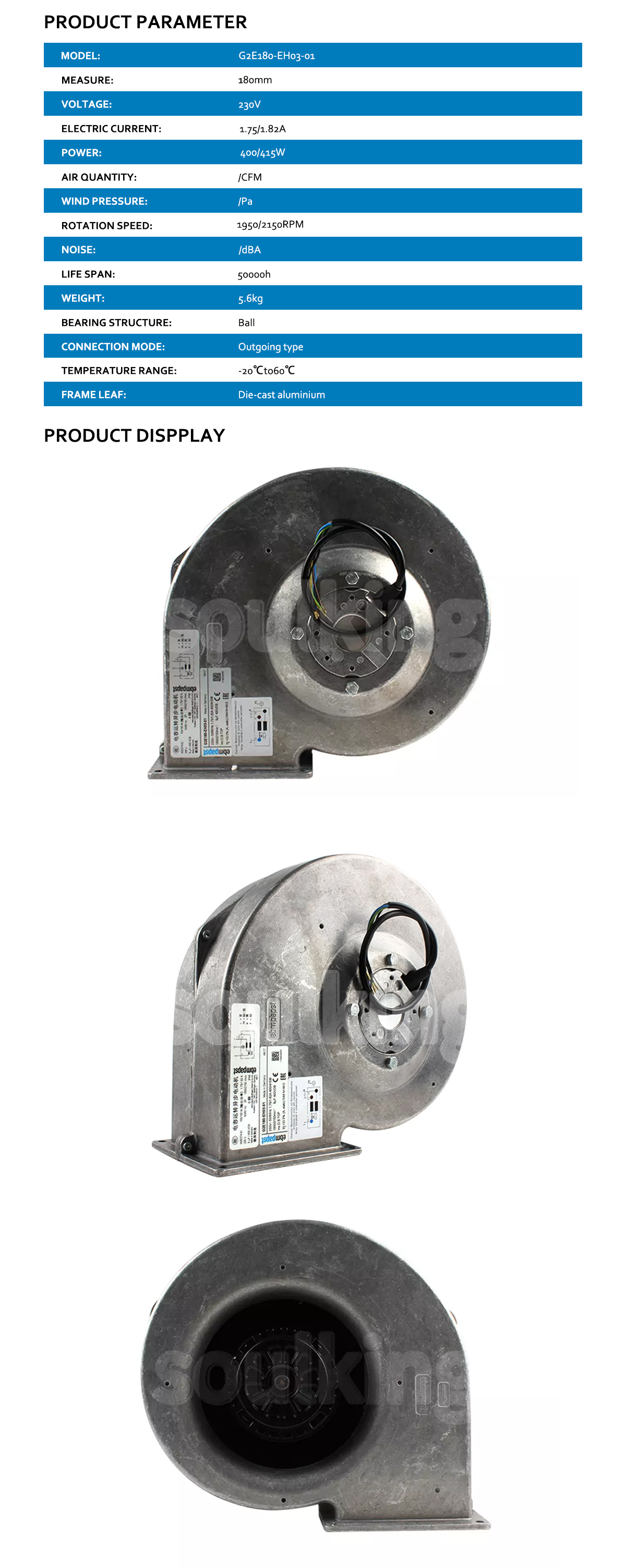 ebmpapst ac blower fan air purifier blower fan 180mm 230V 1.75/1.82A 400/415W G2E180-EH03-01