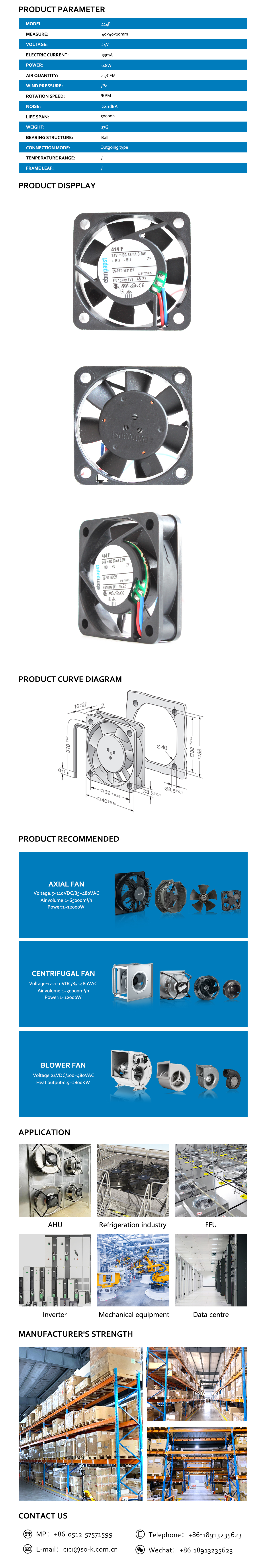 ebmpapst dc fan mini 40mm dc cooling fan 4010 24V 33mA 0.8W 414F